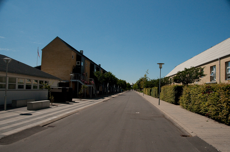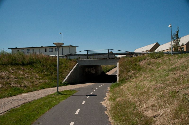 Les premiers kilomètres se font dans une zone pavillonnaire sortie de terre dans les années 60 et 70. A cette époque, le vélo était déjà pris en compte dans la planification urbaine au Danemark si bien que l’autoroute emprunte de nombreux passages dénivelés inférieurs garantissant ainsi un itinéraire dédié et totalement séparé de la circulation automobile. A deux endroits l’autoroute s’interrompt bizarrement pour laisser la place à une zone 30…
