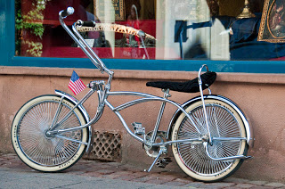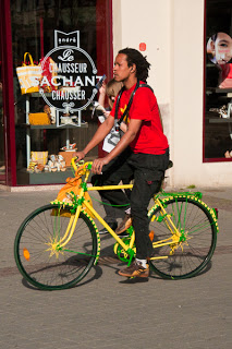 Non, vous n'êtes pas à LA, ce n'est pas Xzibit sur la photo mais voici un vélo particulièrement bien décoré rencontré il y a quelques semaines place Kleber. Des rayons, au pédalier en passant pas les garde boues, la lumière et même la dynamo, presque tous ses éléments ont eu droit à une touche de couleur. Du grand art. Chapeau l'artiste !