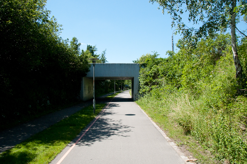 Les premiers kilomètres se font dans une zone pavillonnaire sortie de terre dans les années 60 et 70. A cette époque, le vélo était déjà pris en compte dans la planification urbaine au Danemark si bien que l’autoroute emprunte de nombreux passages dénivelés inférieurs garantissant ainsi un itinéraire dédié et totalement séparé de la circulation automobile. A deux endroits l’autoroute s’interrompt bizarrement pour laisser la place à une zone 30…