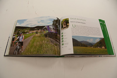 LH: L'éditeur m'a contacté en janvier 2011, alors que je n'avais ni manuscrit ni photos. A partir de ce moment-là, il a fallu environ un an pour créer tout le texte, c'est-à-dire transcrire le descriptif du parcours vers une prose utilisant uniquement l'infinitif. La mise au point des tracés a nécessité plusieurs mois de navette avec la graphiste. Tout le mois de mai 2011 a été consacré à parcourir une deuxième fois tous les circuits à vélo (3500 km) en vue de faire les photos d'illustration. Enfin, l'hiver 2011-2012 a vu la mise en page, le choix des pictogrammes, la rédaction des synthèses, des légendes et des renseignements pratiques.