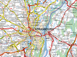 LH: Au début, j'avais pensé au cartographe allemand Seeger de Fribourg, qui fait de belles cartes transfrontalières en y faisant figurer d'ailleurs 3 des circuits fraîcheur sur la bande rhénane. Mais comme sa zone de travail ne va pas jusqu'aux limites Nord de l'Alsace, il a donc fallu solliciter les services de l'IGN pour obtenir un fond de carte précis et complet. C'est le choix de l'échelle, qui fut longue à trouver, car les circuits varient de 15 à 140 km, nécessitant parfois un découpage sur plusieurs pages. C'est finalement l'échelle au 1/100 000 rarement utilisée et dont je ne connaissais pas la version, qui a été choisie.