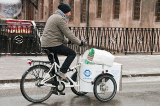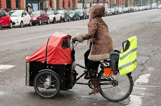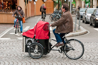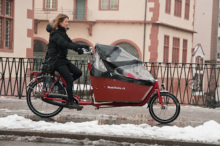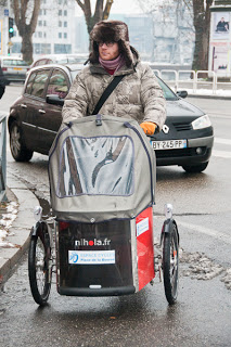 Après avoir découvert l'historique des vélos cargo, différents modèles et leur utilisation à des fins publicitaires ou logistique, voici maintenant une petit aperçu des utilisateurs de vélos cargos à Strasbourg. Vous avez déjà pu en avoir un en septembre dernier. Vous constaterez qu'à Strasbourg, les vélos cargo ne passent pas l'hiver au garage, mais continuent à assumer fidèlement leur rôle quotidien.