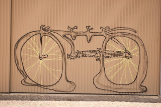 Le vélo a également inspiré un graffiti artiste genevois qui reproduit à l'aide de bombes de peinture ou de pinceaux d'imposants vélos plus ou moins originaux dans les rues de la ville.