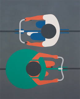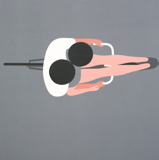 Geoff McFetridge est un artiste basé à Los Angeles qui a gagné une reconnaissance grâce à ses travaux sur différents supports. Voici deux de ces toiles qui proposent une vision originale des cyclistes. La première s'intitule Doubling et la seconde Passing...