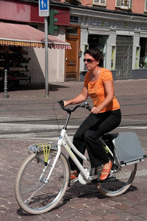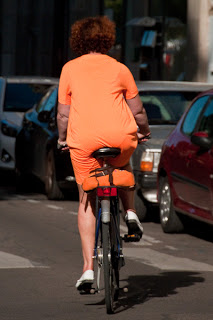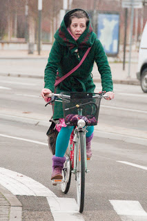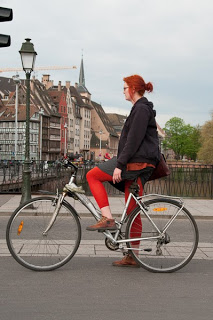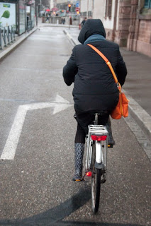 La sélection des photos pour cet article n'a pas été très ardue. En effet, l'orange semble être une des couleurs les moins portées par les cyclistes strasbourgeois. De plus, les vélos oranges sont très rares... Voici quand même quelques photos de cyclistes qui passent à l'orange dont de rares qui l'assument pleinement !