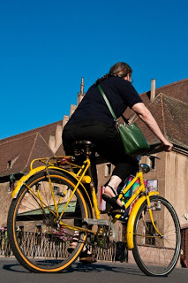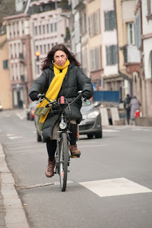 A Strasbourg, les cyclistes aiment le jaune et le portent de différentes manières. Discrètement, avec une écharpe, un sac ou un gilet, il permet de donner une note chaude et visible au cycliste.