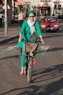 La couleur verte est très présente dans la nature et malheureusement beaucoup moins en ville. Les cyclistes inversent cette tendance grâce à leur vêtements et aux nombreux Vélhop qui circulent à Strasbourg depuis l'automne 2010. Certaines vélhopeuses vont même jusqu'à accorder leur casque avec leur monture...