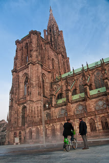 Livrée samedi dernier aux strasbourgeois après de plus d'une année de travaux, la place du château, attenante à la Cathédrale a enfin été délivrée de la centaine de voitures qui y stationnaient quotidiennement et rendue aux piétons et aux cyclistes. L'occasion était trop belle cette semaine de découvrir cette nouvelle place historique de Strasbourg et ses cyclistes qui y cohabitent parfaitement avec les nombreux piétons.