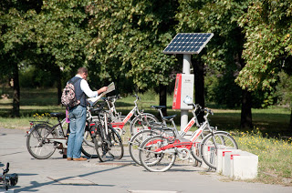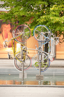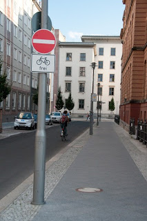 Il ne m'a pas fallu longtemps pour me rendre compte que le vélo avait une grande place à Berlin. Dès mon arrivée, dans la magnifique Hauptbahnof, j'ai vu de nombreux cyclistes sur les quais et dans les trains régionaux ou métro puisque le transport des vélos y est autorisé sous réserve de s’acquitter d’un ticket pour sa monture (de 1,1 € pour un petit trajet à 20 € pour la carte mensuelle). Pour favoriser l'intermodalité, la Deutsche Bahn à depuis quelques années développé dans plus de 40 villes du pays un système de location de vélos en libre service appelé « Call a bike ». On retrouve une centaine de stations alimentés par panneaux photovoltaïque dans les quartiers centraux de Berlin. En complément de nombreux arceaux sur lesquels squattent très peu d'épaves sont disséminés sur l’ensemble de la ville.