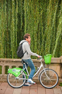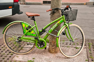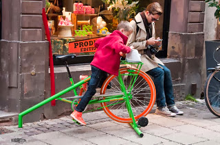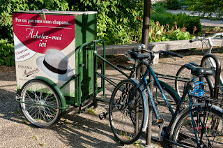 A Strasbourg qu'il soit en vitrine, stationné sur l'espace public ou en circulation, le vélo fait sa pub en s'insérant de manière relativement discrète dans l'environnement urbain.