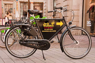 Dans la société de consommation où nous vivons, la publicité est très présente que ce soit dans les divers médias ou sur l'espace public. Grâce à ses avantages (moins encombrant, permettant de pénétrer au cœur des villes où les voitures sont prohibées et à la gratuité de son stationnement), le vélo n'échappe pas à ce détournement publicitaire.