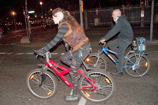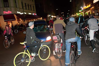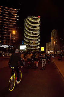 Un rapide passage à Berlin en fin de semaine dernière m'a permis de participer à la Critical Mass du mois d'Octobre. Près de 400 cyclistes s'étaient donné rendez-vous vendredi soir pour défiler dans les rues de la capitale allemande.