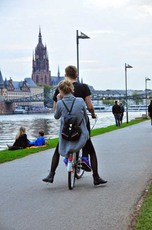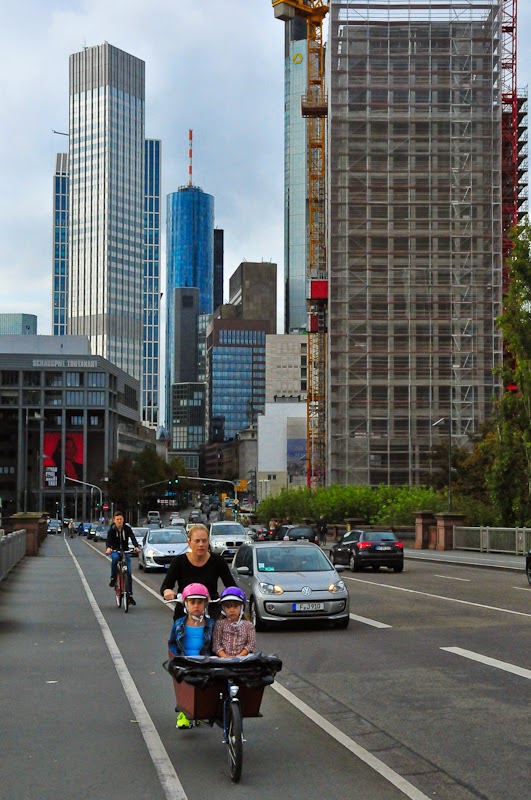 I was in Frankfurt at the end of September and got a little time to discover the city center and its cyclists. I saw a lot of hipsters riding fixies or bikes with speeds, which are significant indicators of a strong bicycle culture in a city.