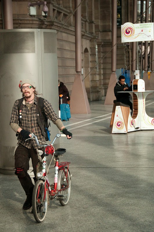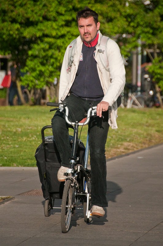 | Fabien Masson, Directeur du CADR 67, va rentrer chez lui en pliant son Brompton et en l'embarquant dans le TER. |