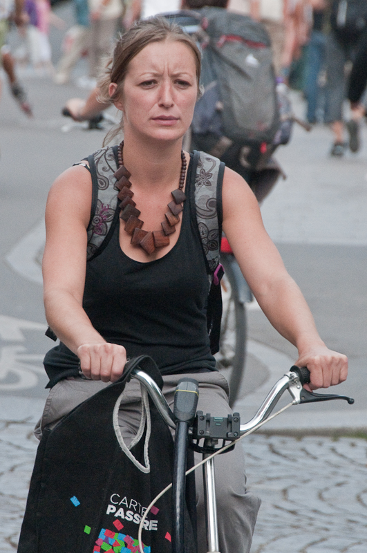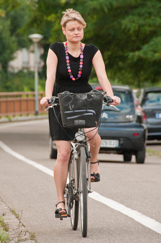 Après les cruisers, les tatouages et les chapeaux, on continue dans les séries de photos estivales avec les colliers. De nombreuses cyclistes strasbourgeoises se parent de cet accessoire qu'il soit discret, coloré ou original...