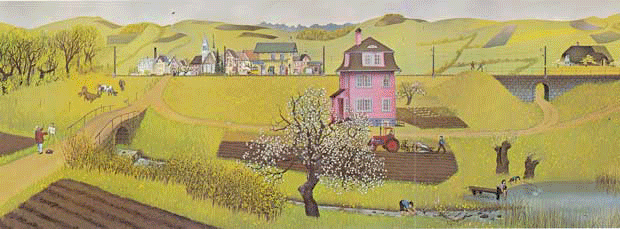 Certaines images valent mieux que de grands discours! L’artiste Jörg Müller* a fait ce choix pour représenter l'impact du développement urbain sur le paysage. Il a publié en 1973 et 1976 deux livres intitulés "La ronde annuelle des marteaux-piqueurs ou la mutation d'un paysage" et "La pelle mécanique ou la mutation d'une ville". Jörg Müller dont le style s'inspire du courant du photo-réalisme, utilise uniquement son talent de dessinateur pour questionner l'évolution de nos sociétés contemporaines, sans être moraliste ou fabulateur. Ses illustrations présentent avec conscience et réalisme comment l'aménagement du territoire et l'urbanisme ont profondément et irrémédiablement modifié le paysage.