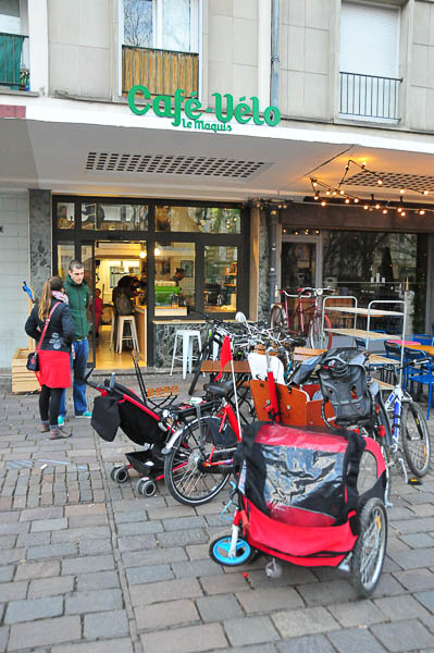 Au Maquis, dans une décoration mettant en avant le vélo vintage, vous pourrez déguster un bon café ou un thé (en provenance du Thé des Muses), accompagné d'une délicieuse pâtisserie tranquillement installé dans sa mezzanine cosy. Vous pourrez vous y détendre ou travailler, grâce à la bonne connexion wi-fi, tout en observant votre vélo se faire réparer à travers la partie de sol vitrée donnant sur le petit atelier de réparation. Dans celui-ci toutes les réparations quotidiennes sont possibles (crevaisons, révision des freins ou des lumières...). Vous pourrez également profiter du petit coin bibliothèque où vous trouverez des ouvrages et magazines sur le vélo (dont Cargologie) mais également sur le café.