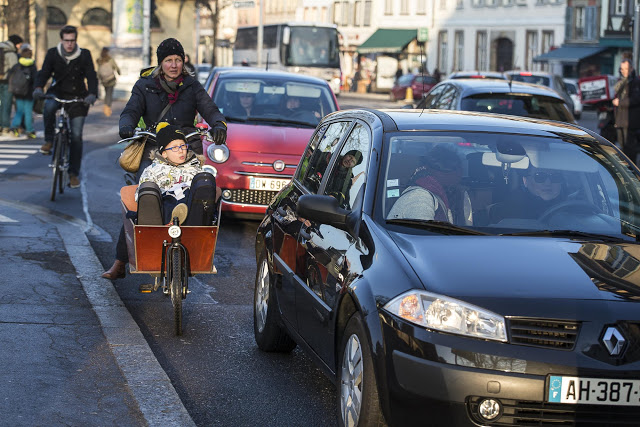 Durant le marché de Noël, le centre ville de Strasbourg n'est pas une No Go Zone pour les cyclistes. Cependant, la densité de la foule et la place prise par les animations contraignent fortement les déplacements à vélo et même, de plus en plus à pieds ! Il est donc préférable, si possible, d’adapter ses déplacements.